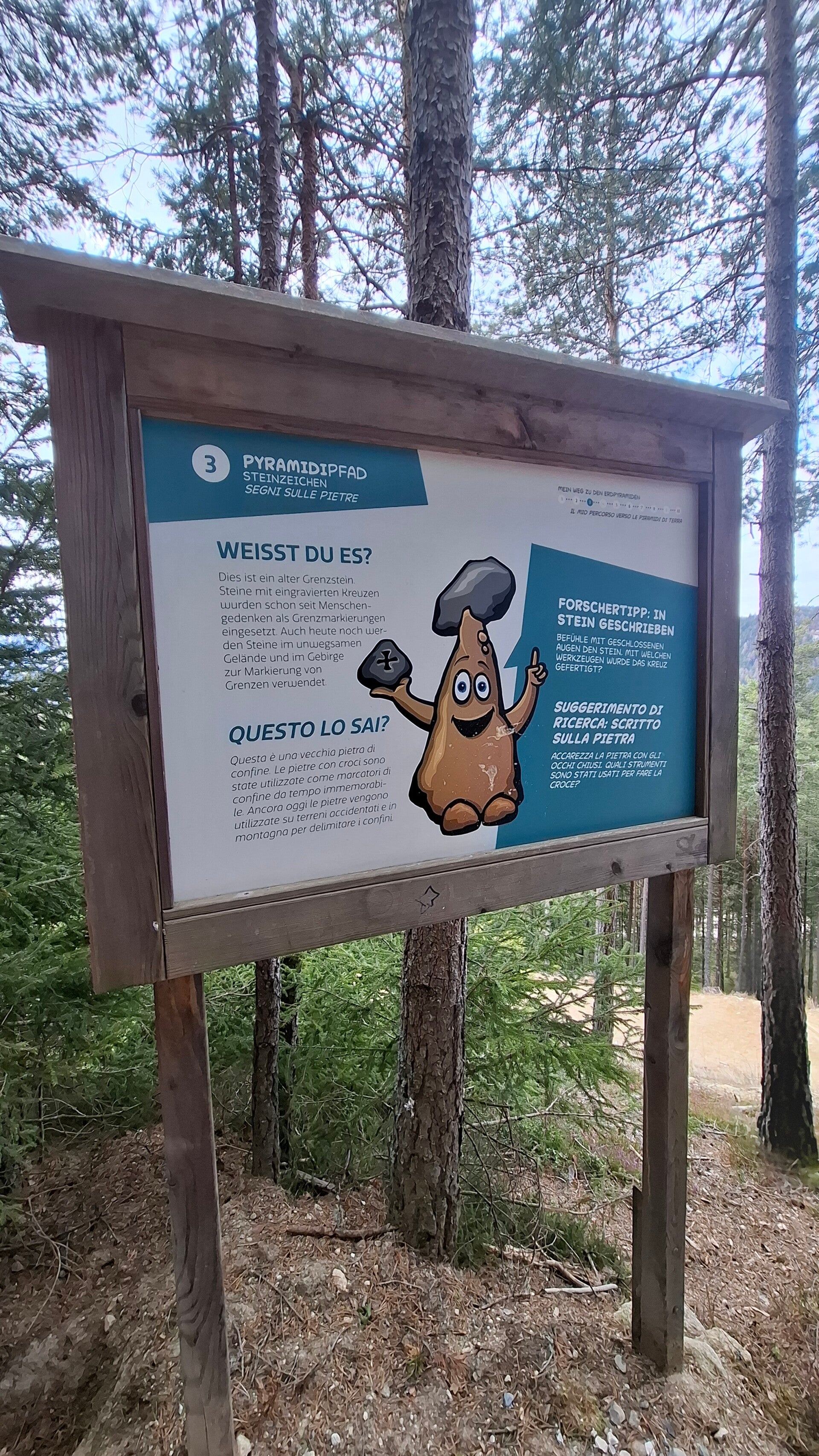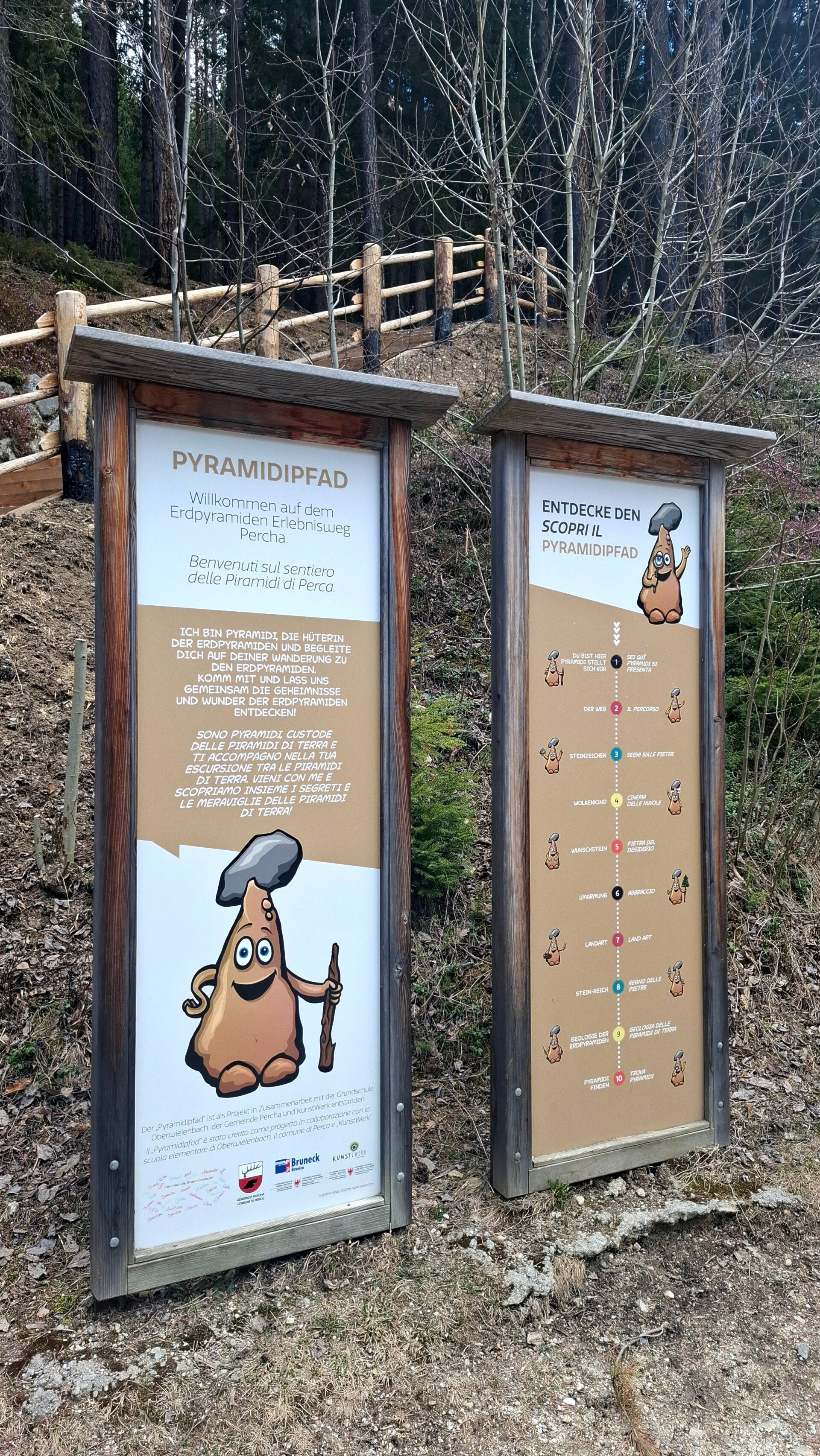 Gerade für Familien ist der Weg ideal, weil er nicht einfach nur „hoch führt“, sondern durch einen liebevoll gestalteten Lehrpfad ergänzt wird. Entlang der Strecke gibt es immer wieder spannende Stationen, die kindgerecht erklären, wie die beeindruckenden Erdpyramiden überhaupt entstanden sind. So wird der Weg ganz nebenbei zu einer kleinen Entdeckungsreise, bei der sowohl Kinder als auch Erwachsene noch etwas lernen können.