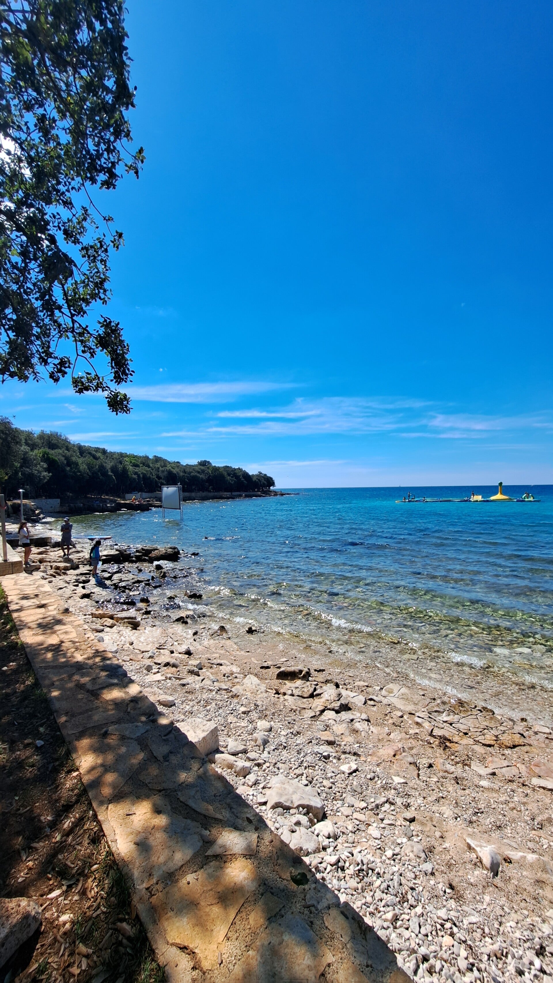Läuft man am Meer entlang Richtung Pula kommen noch ein paar Buchten mit feinerem Kiesstrand. Auf dem Campingplatz befinden sich auch Spielplätze und Supermärkte.